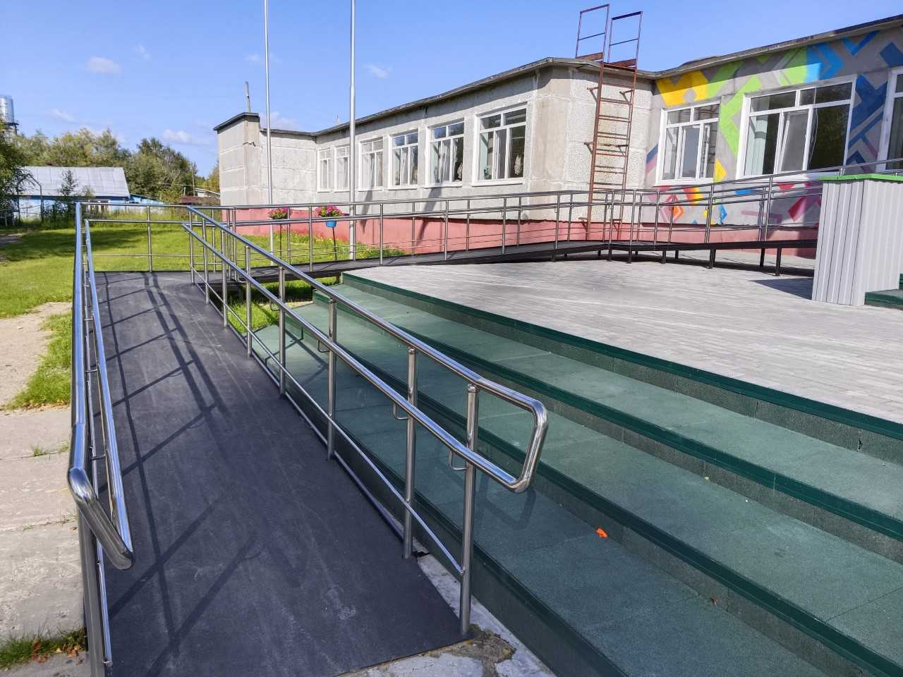 2. В рамках реализации государственной программы «Доступная среда» установлен пандус, который оборудован перилами и поручнями для входа в здание школы.